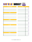Set a budget for a child birthday party or adult milestone birthday with the help of this blank list, organized into categories such as food, drinks, gifts, and decorations.